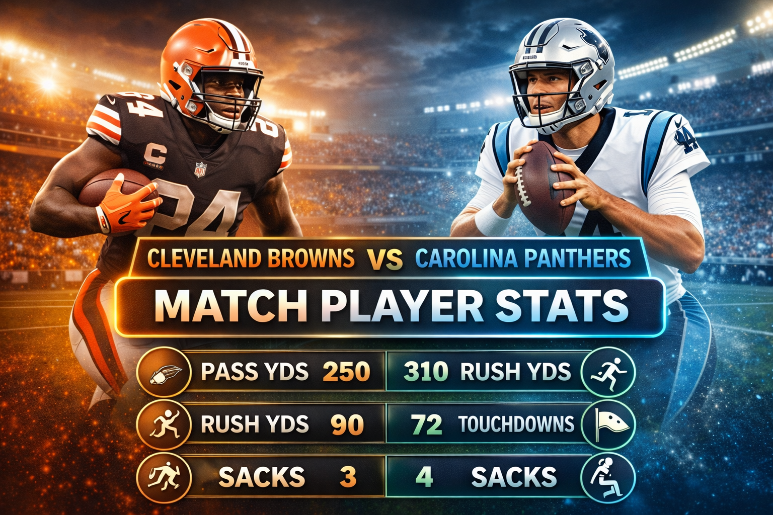 The Browns quarterback threw for 250 yards with 2 touchdowns, while the Panthers quarterback had a stellar game with 310 yards and 3 touchdowns.