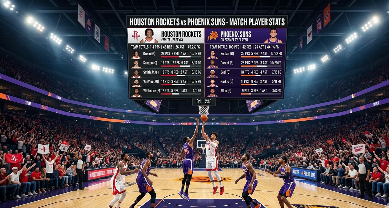 The houston rockets vs phoenix suns match stats – player performances from another thrilling West clash. Their winning streak reached seven with a victory against the Suns, pulling away after trailing by 21 points and beating Phoenix 119-105 on the road. Cotton will just overcome those numbers while Kevin Durant scored 24 points on his emotional return to Phoenix and Devin Booker toughed up for a game-high 31 points. In this tightly contested surprise, the largest factor was Houston dominating after the glass with a 55-34 rebound advantage.